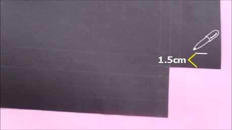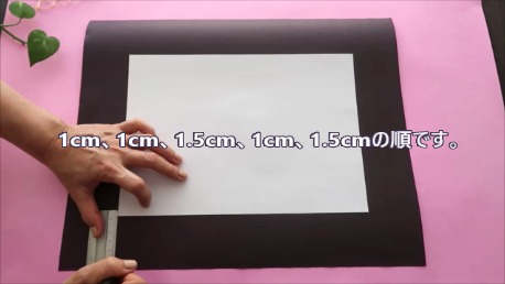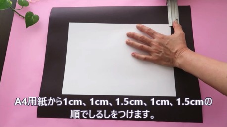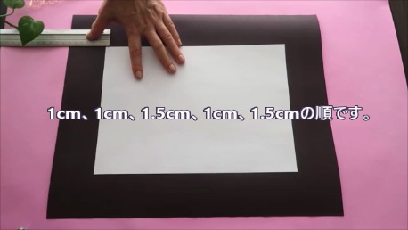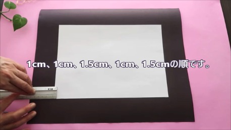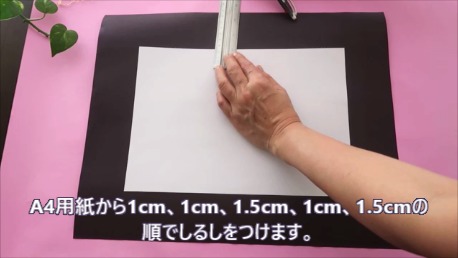 次にA4用紙から幅 1cm、そこからさらに1cm、1.5cm、1cm 、1.5cm の順で
