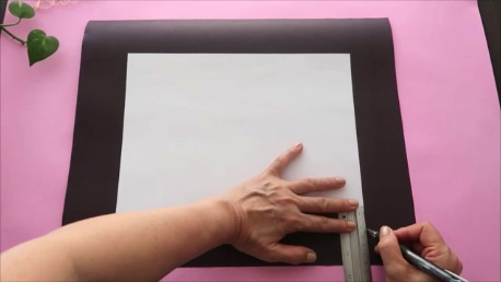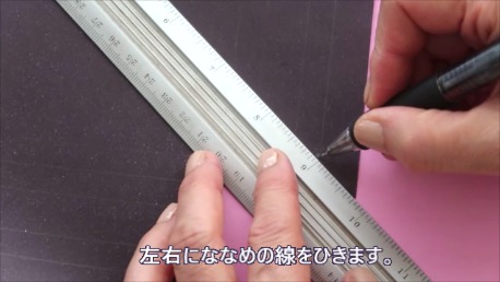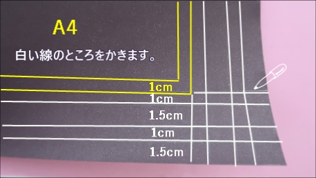 定規と鉛筆を使って A4用紙に合わせて線を引きます。