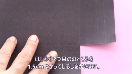 右はしから2つ目のところを下から1.5cm 測り線をかきます。