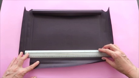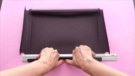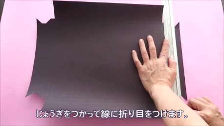 線の上に折り筋がくるよう定規をしっかり当てて、