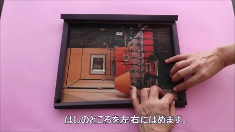 下側と上側を左右の斜めの部分にはめ込む形で固定させます。
