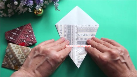 3つ目は、マチを作るところです。封筒なので、折り筋を