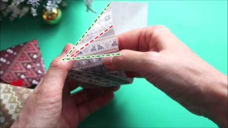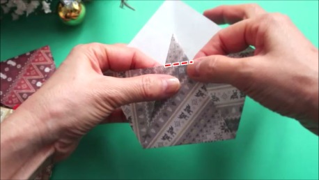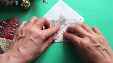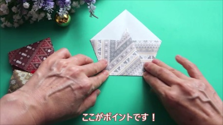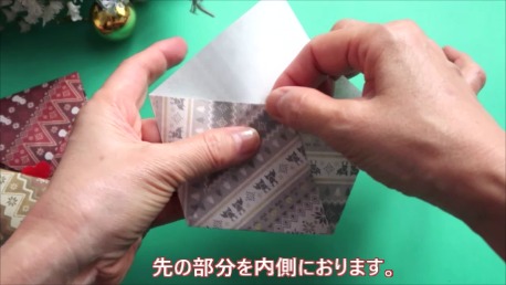 角が少し飛び出すように折ってください。