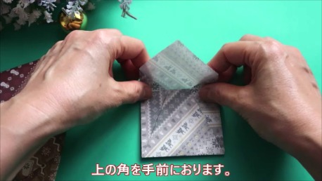 上の部分を手前に折ります。