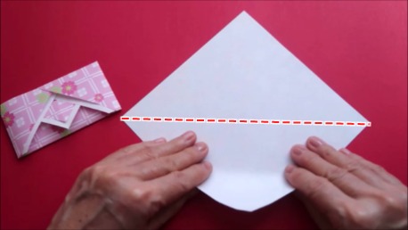 四角を作ってから上下の折り筋をつけます。