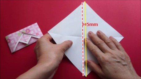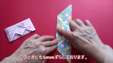 この時にも5mmずらしてから折り目をつけます。