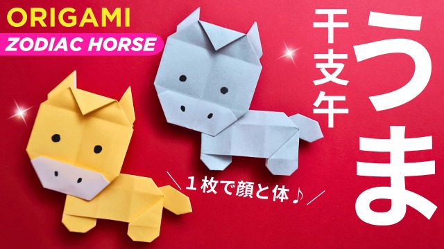 折り紙1枚で作れる「馬(午)」の顔と全身は、