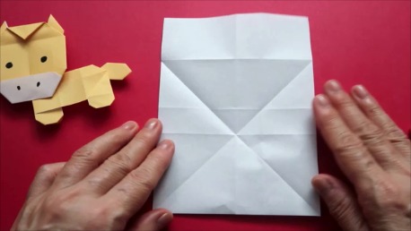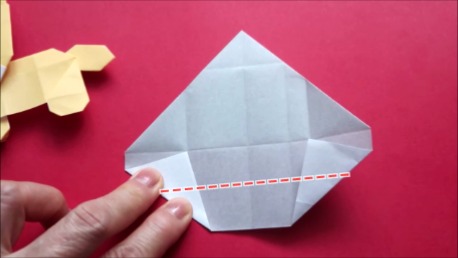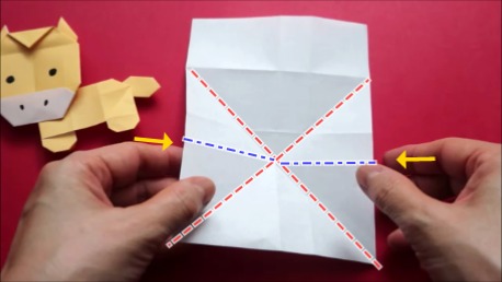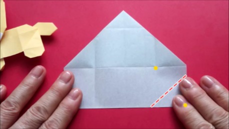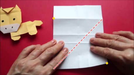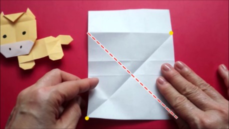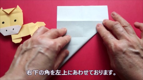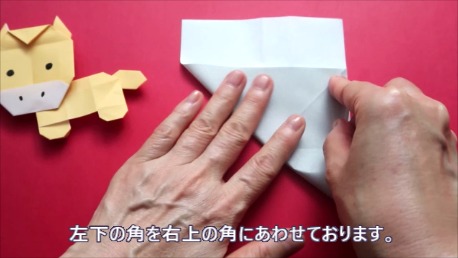 左下の角を折り筋が重なる点に合わせております。