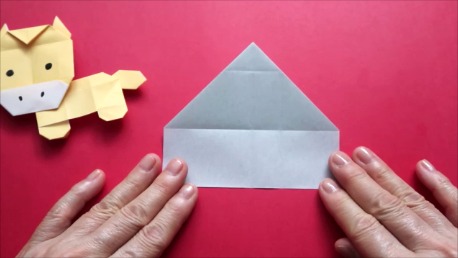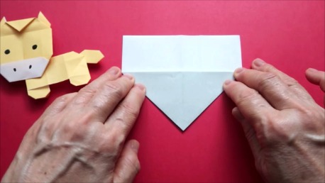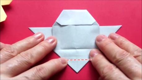 下の辺を真ん中でおります。