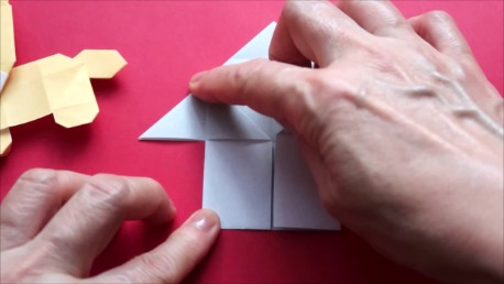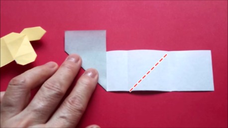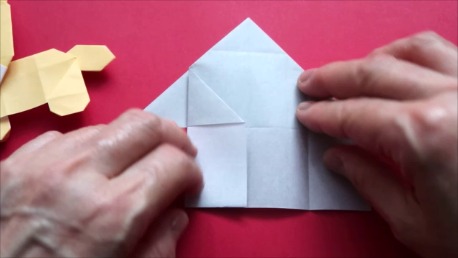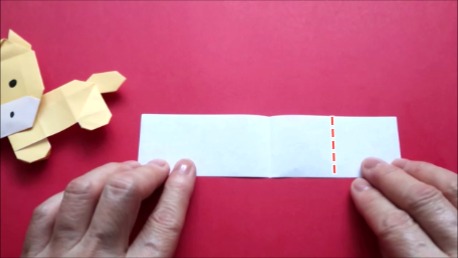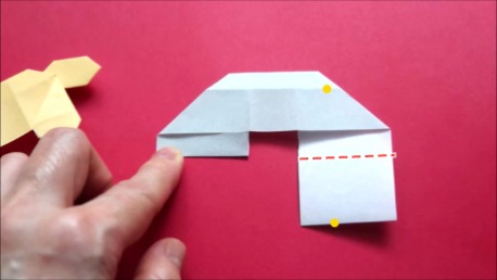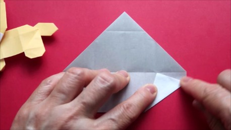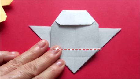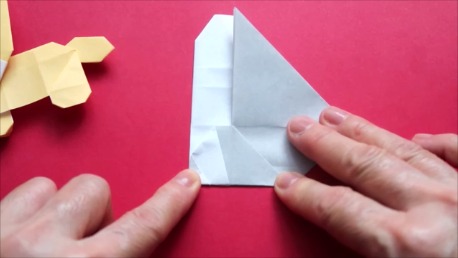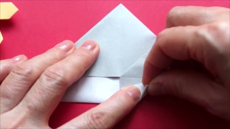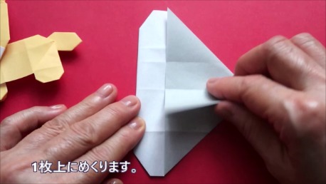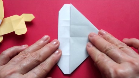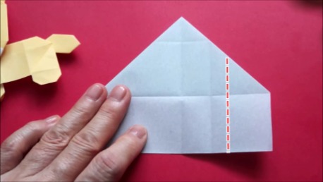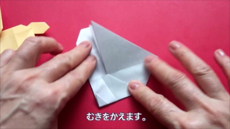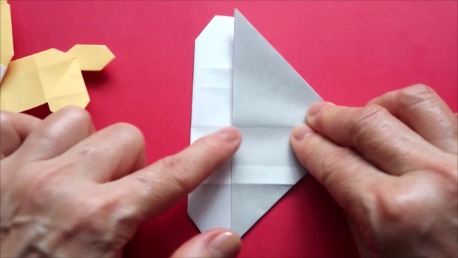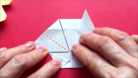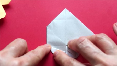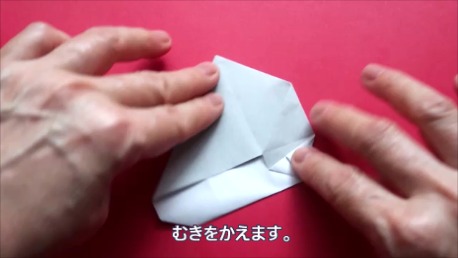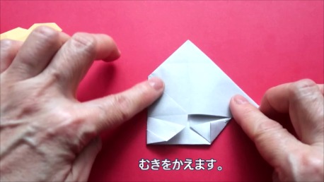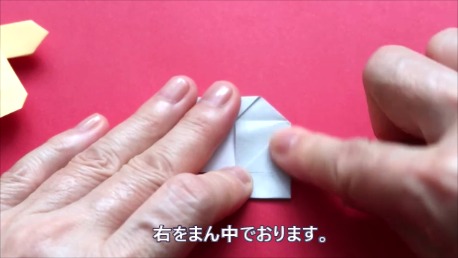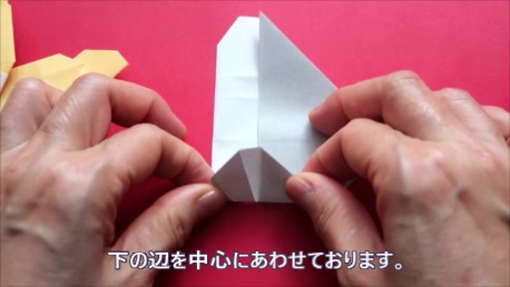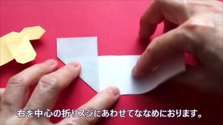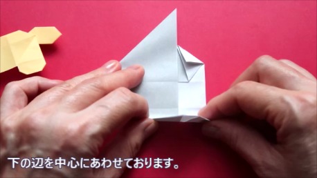 中心に合わせて右の辺をおります。