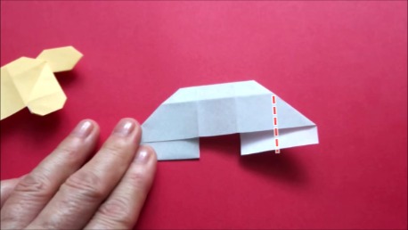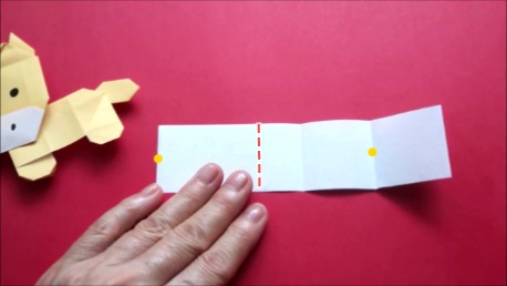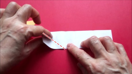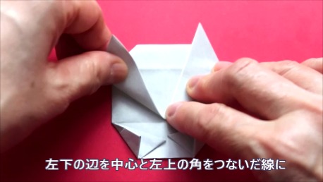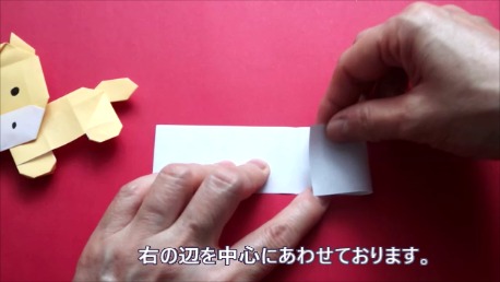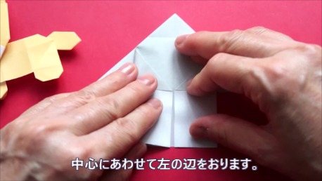 中心に合わせて左の辺をおります。
