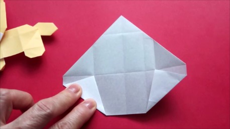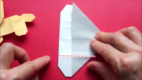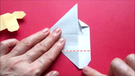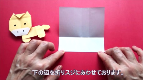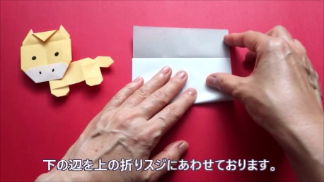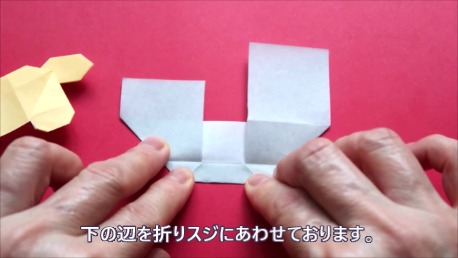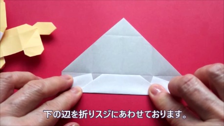 下の辺を上の折り筋に合わせております。