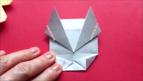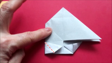 下の角を折り筋に合わせております。