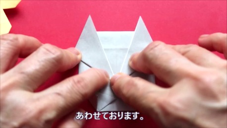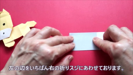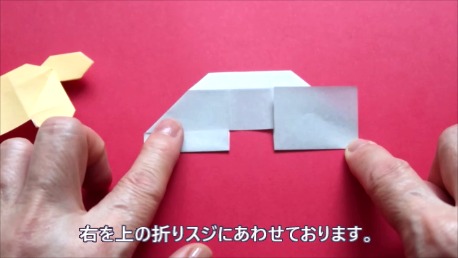 右を上の折り筋に合わせております。