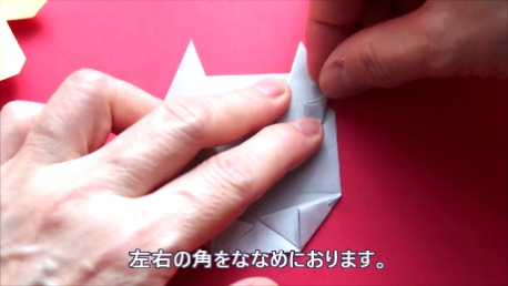左右の角を斜めに折ります。