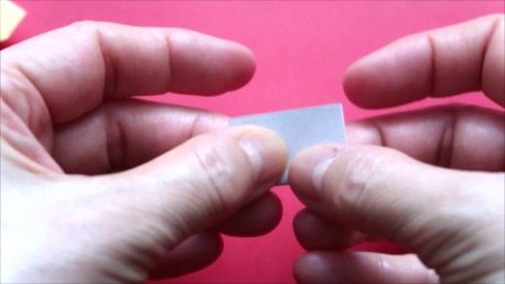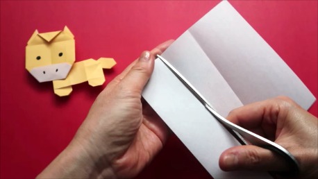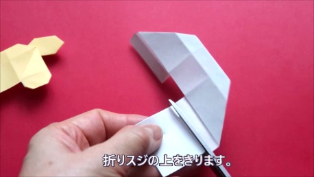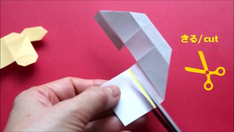 折り筋の上をハサミで切ります。