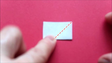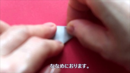 右下の角を上の真ん中に合わせて斜めに折ります。