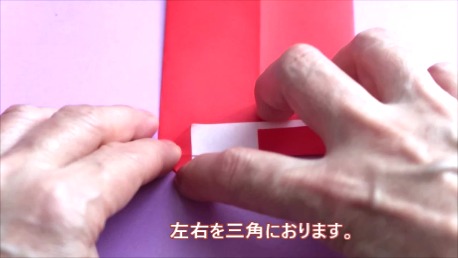 左右を三角に折ります。