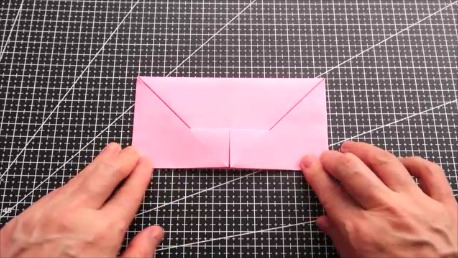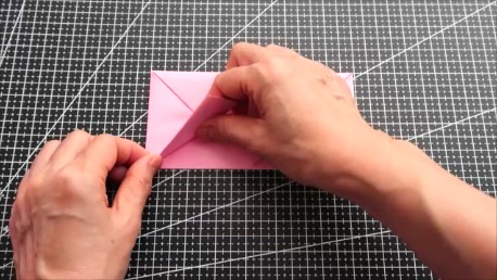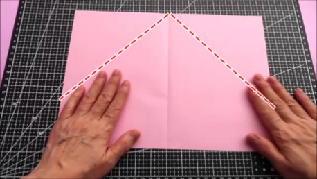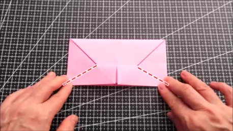 左右の上の辺を折り筋に合わせてななめに折ります。