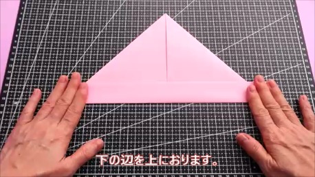 下の辺を半分に折ります。