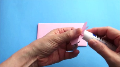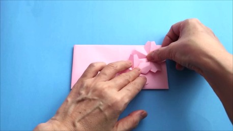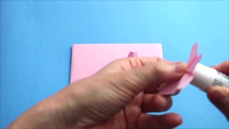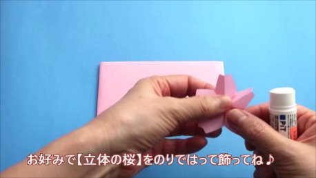 桜を2つ折ったら、のりを裏側につけます。