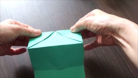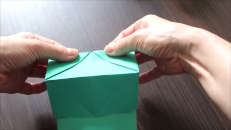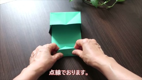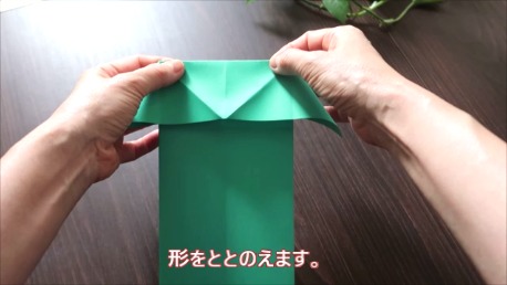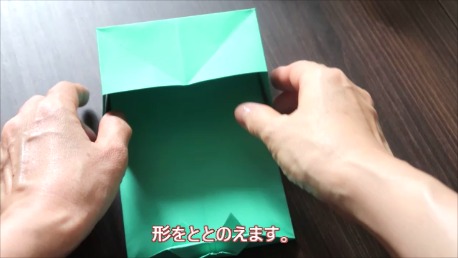 折りスジをしっかりつけて形を整え箱のような形を作ります。