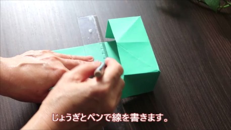 2つ目は、 箱の形をを作るところで、折りスジをつけるところです。