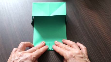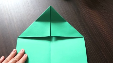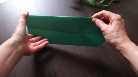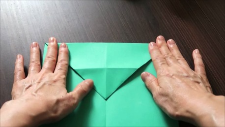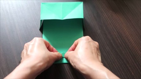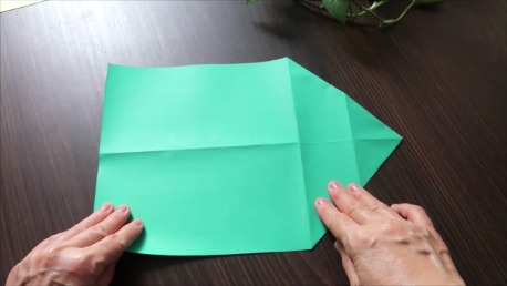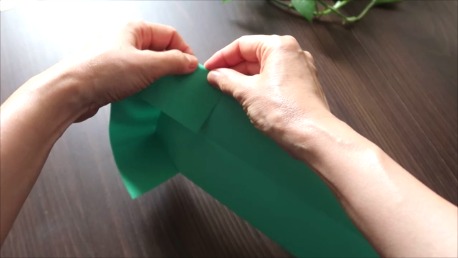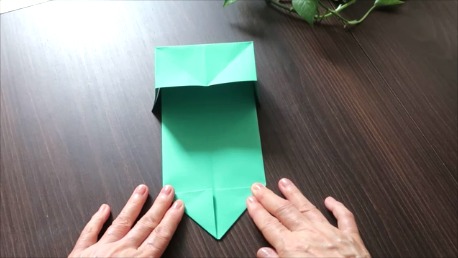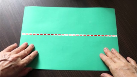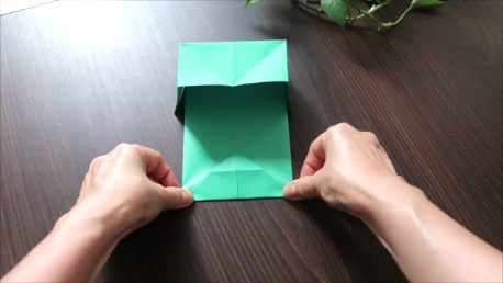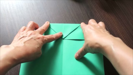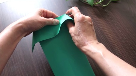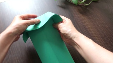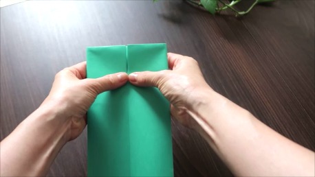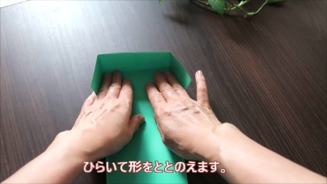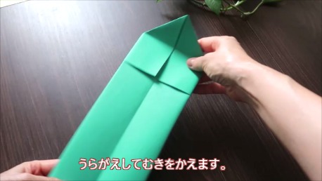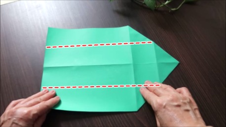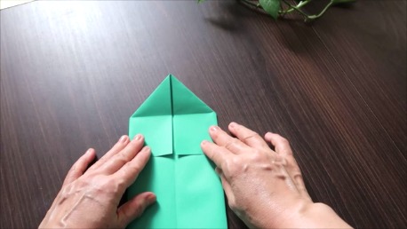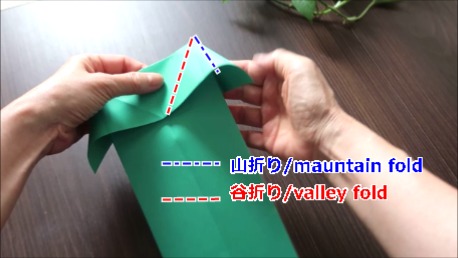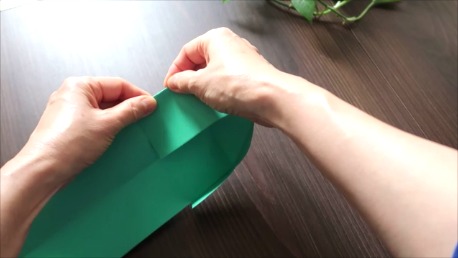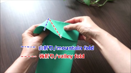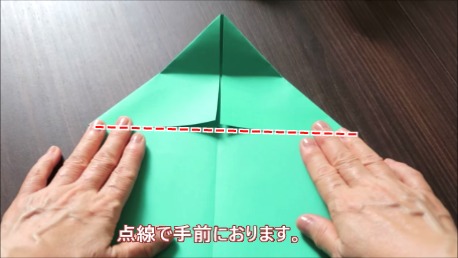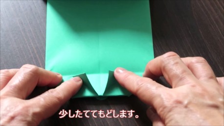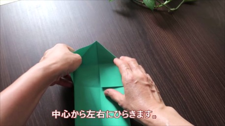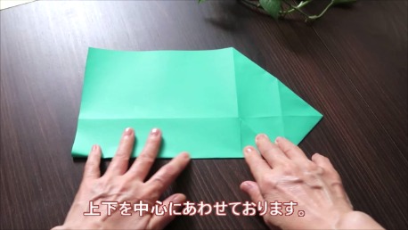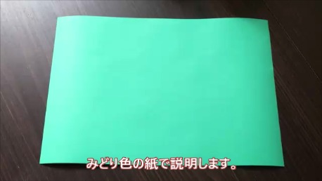 緑色の折り紙で説明します。