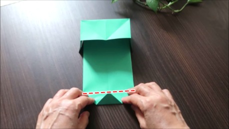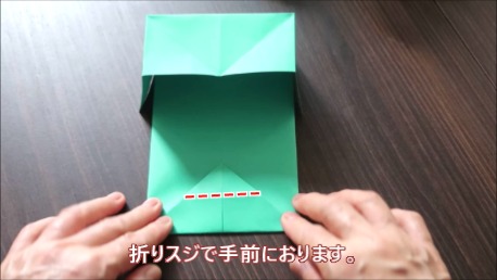 折り筋で手前に折ります。