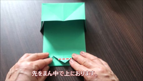 先を真ん中で上に折ります。