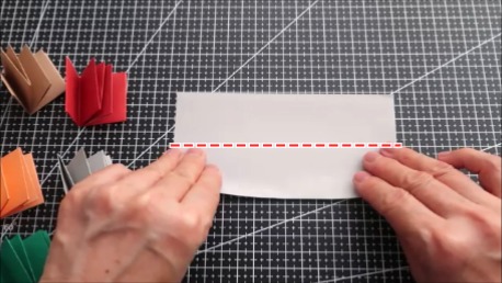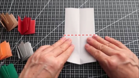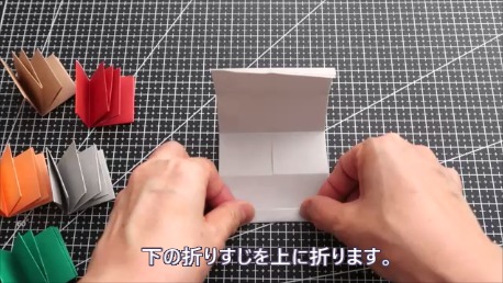 下の折り筋を上に折ります。