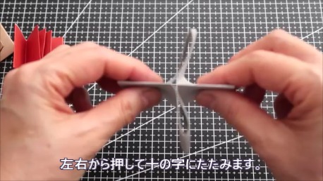 左右から押して十の時にたたみます。