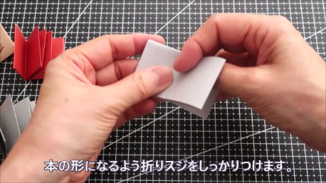 本の形になるよう折り筋をしっかりつけます。