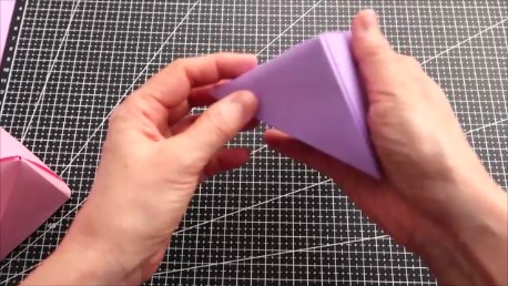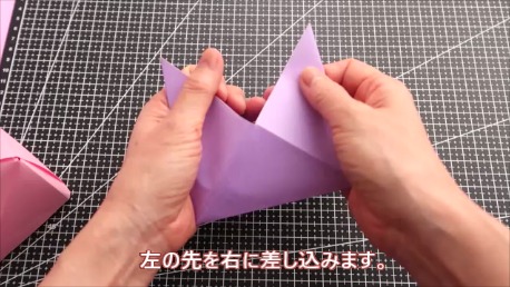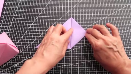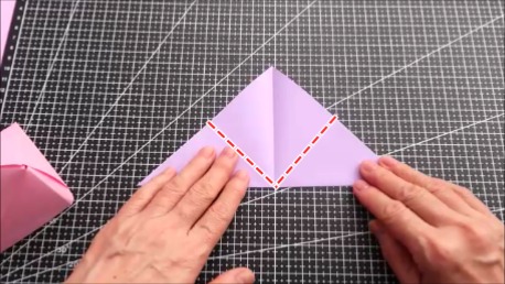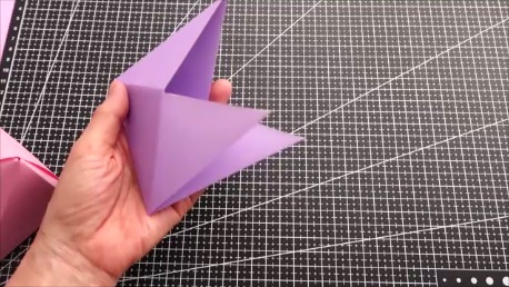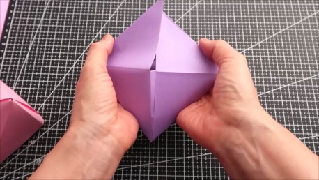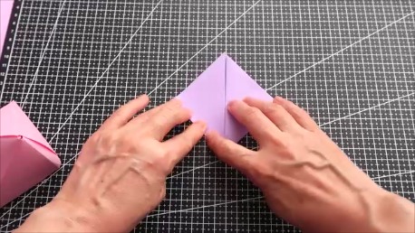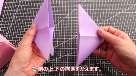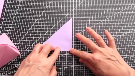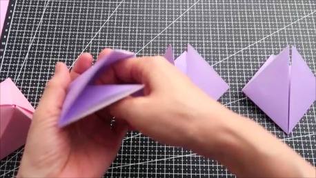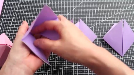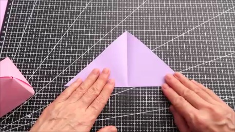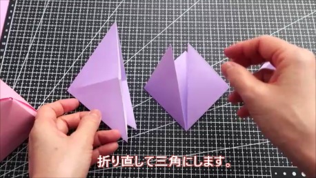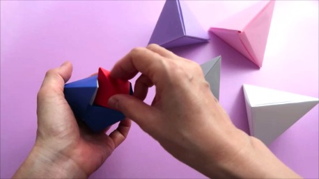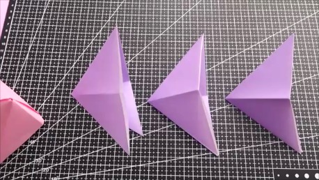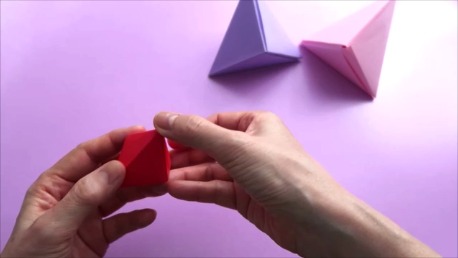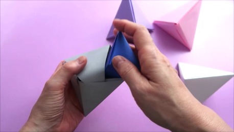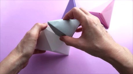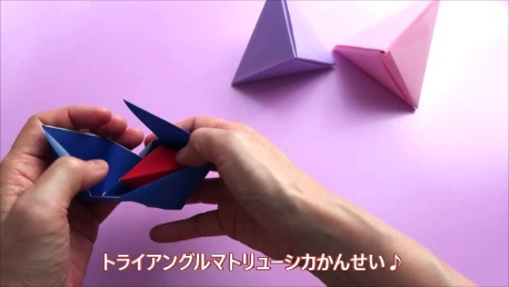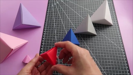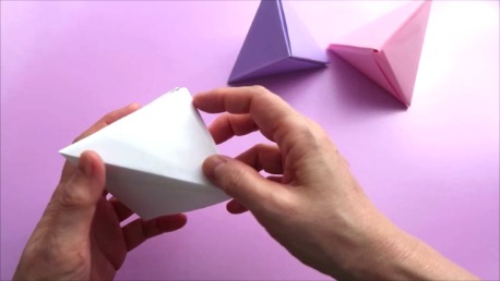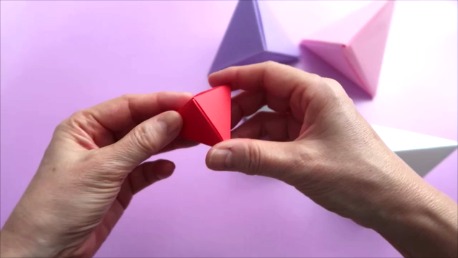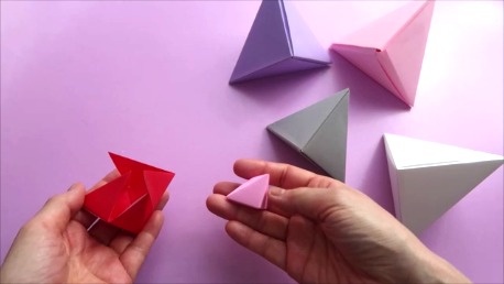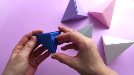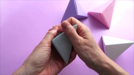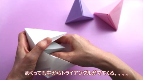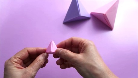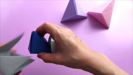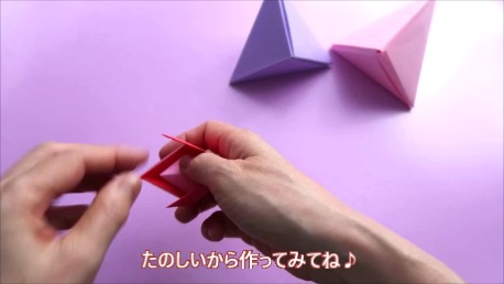 三角形を立体的に折って作るシンプルで楽しい折り紙です。