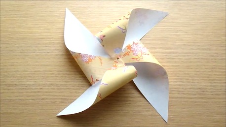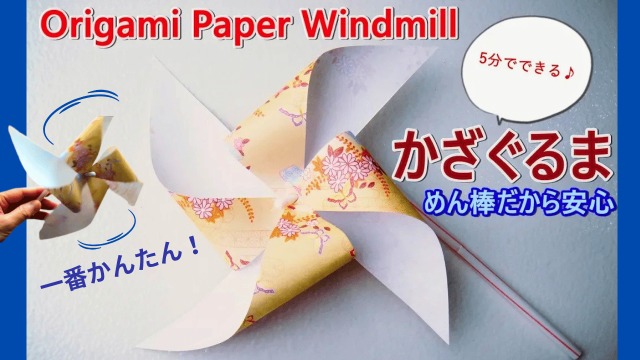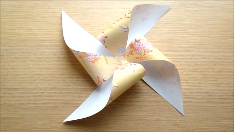 風でくるくる回る折り紙の風車(かざぐるま)は、